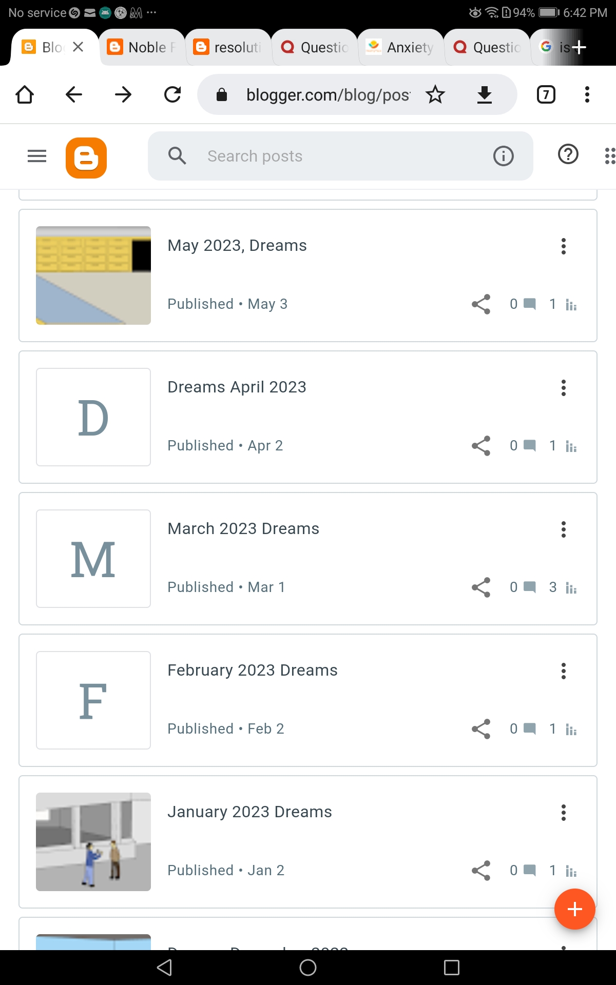 3) Blogger won't show all thumbnails on the headings in my edit posts page of blogger. Glitchy as anything. When something no longer works for me, why should I work for it?